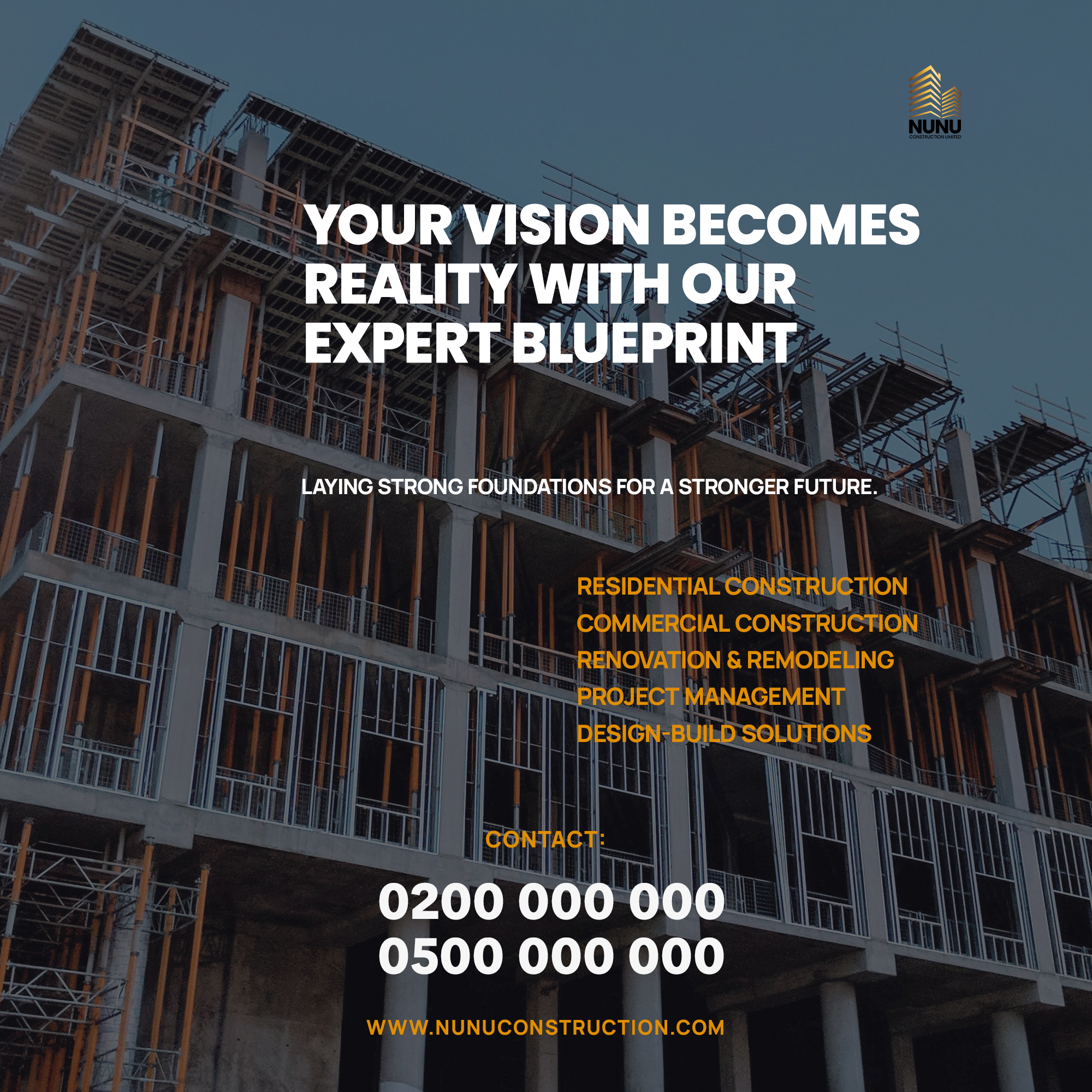 At Nunu Construction, we’re committed to delivering excellence in every project. From concept to completion, our focus is on quality, reliability, and exceeding expectations—every step of the way.