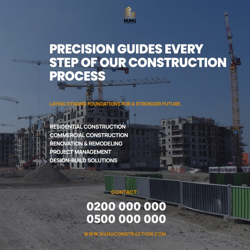 Our expertise extends to the construction of diverse real estate developments. This includes residential communities, commercial properties, and mixed-use complexes, focusing on delivering high-quality, sustainable, and marketable spaces that meet Ghana’s evolving housing and commercial demands.